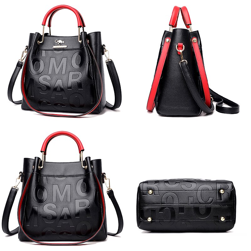 HOT ! Women's Faux Leather Handbag with Embossed Letters and Red Handle - Ideal for Casual and Formal Events