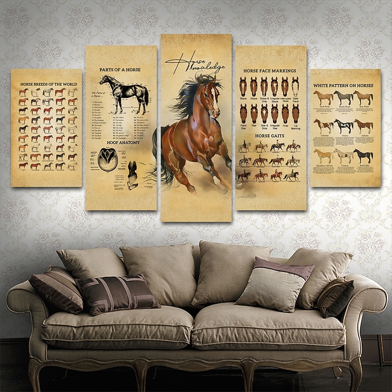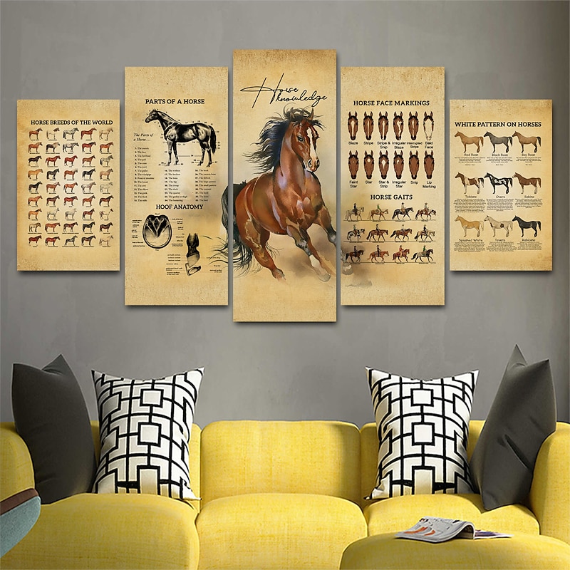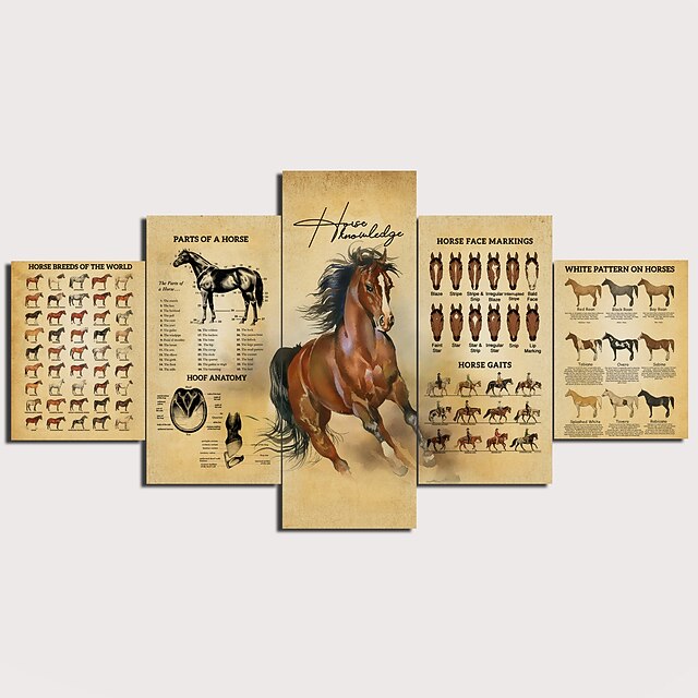 5 Panels Wall Art Canvas Prints Painting Artwork Picture Horse Painting Home Decoration Decor Rolled Canvas No Frame Unframed Unstretched 6