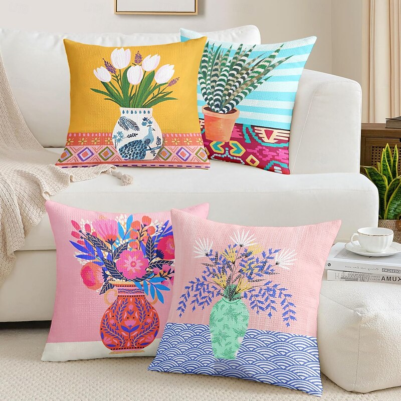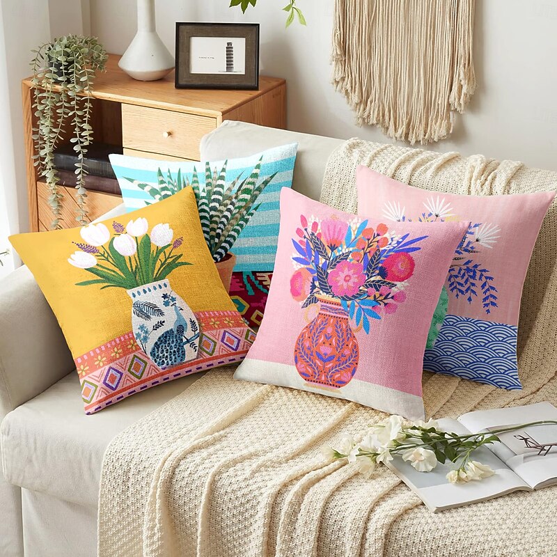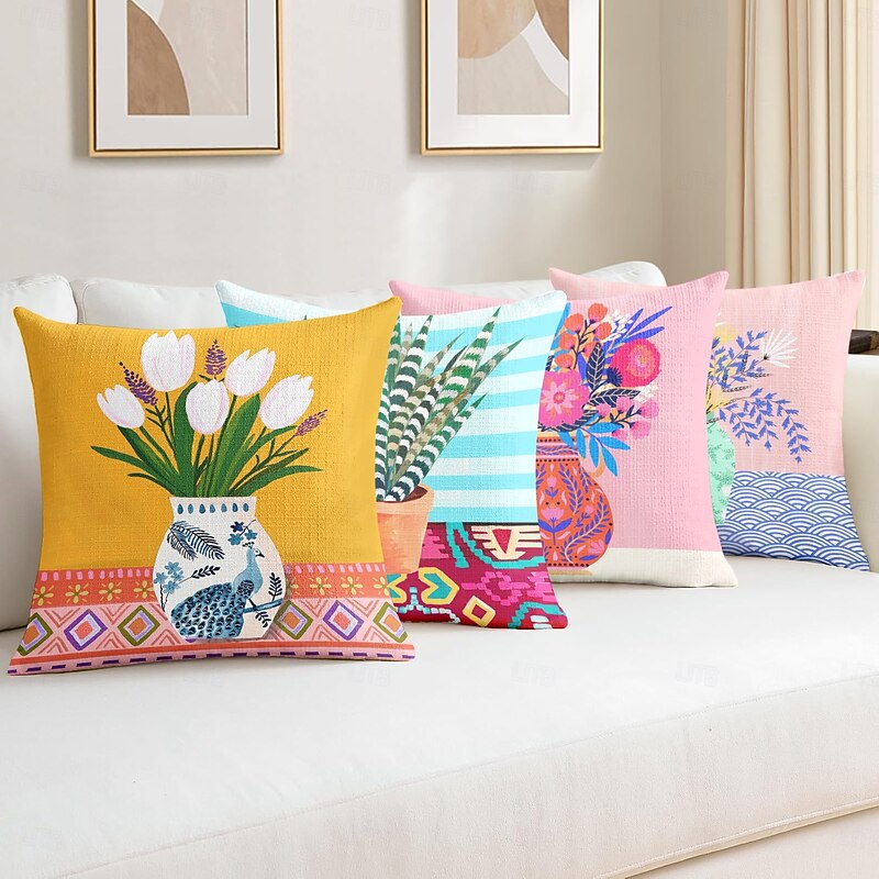 Tulips Vase Decorative Toss Pillows Cover 1PC Soft Square Couch Cushion Case Pillowcase for Bedroom Livingroom Sofa Chair 9