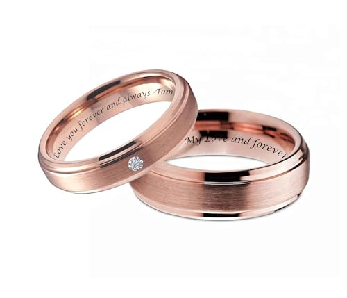More information about Personalized Rose Gold Tungsten Ring Set Custom Engraved Free In Any Language - Couple's Ring Set - Wedding Band Set - Ships from USA