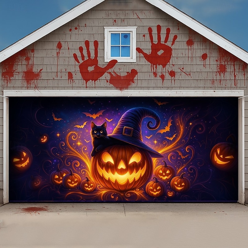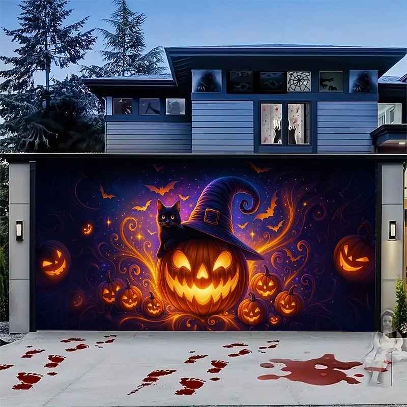 $26.99 - Halloween Garage Door Cover Banner Backdrop – Glowing Jack-o'-Lantern Face with "Halloween" Text, Outdoor Decoration for 2025 Halloween Home Front Yard 2025. Shop for cheap Halloween Garage Door Cover online? Buy at lightinthebox.com on sale today!