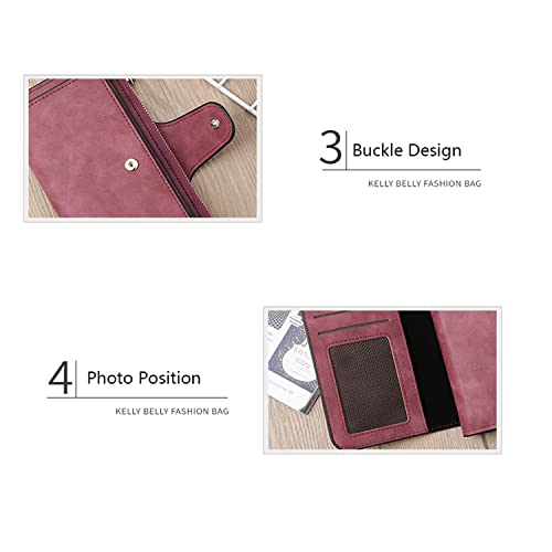 Women Wallet, Women Long Wallet Leather Large Capacity Coin Purse Credit Card Holder Wallets for Man and Woman (Wine red) 5