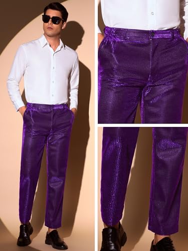 Lars Amadeus Glitter Pants for Men's 70s Disco Metallic Trousers Straight Leg Party Sequin Pants 5