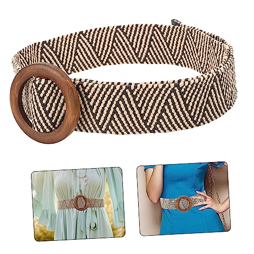 More information about VANZACK Woven Waist Belt Wood Buckle Elastic PP Straw Band for Girls Costumes Fashionable Dress Accessory