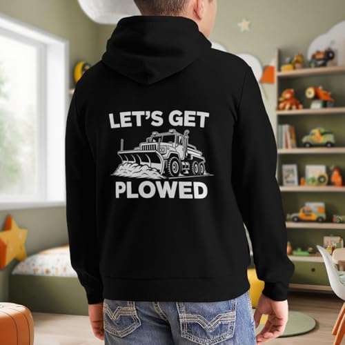 Kids Snow Plower Funny Snowplow Boys Girls Lightweight Kangaroo Pocket Fleece Hoodies