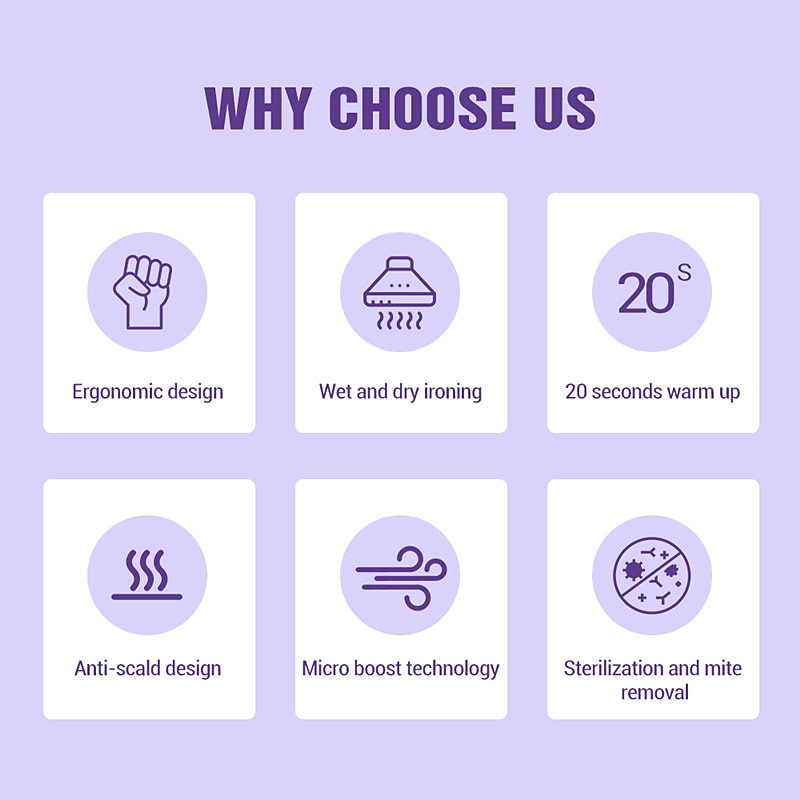 4. Cleaning Features: The high temperature and strong steamer iron effectively dissolve and remove oil stains, dirt, and mold spots from household products. Simultaneously, the ejection of high-temperature steam works as a scrubber, ensuring simple and quick cleaning with remarkable results.