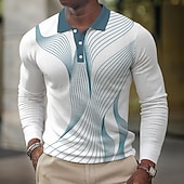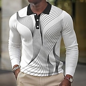 Men's Geometic Line Waffle Polo Shirts Long Sleeve Polo Shirts Collared Shirts Business Casual Business Wear to work Daily Wear Buttons Spring Fall Winter Black Red Blue 10