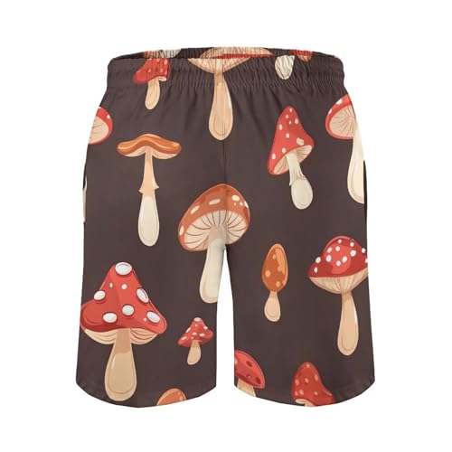HOT ! Red Mushrooms Pattern Men's Swim Trunks Board Shorts Beachshorts Swimsuits with Pockets Mesh Liner