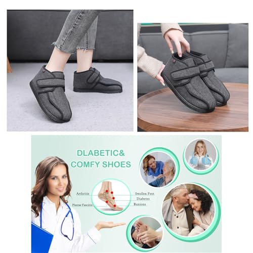 HOT ! Elderly Men's Diabetic Shoes, Men's Winter Warm Thermal Fleece Lined Adjustable Diabetic Shoes, Surgical Easy Close Orthopaedic Shoe, for Elderly Arthritis Edema Swollen Feet Thumb