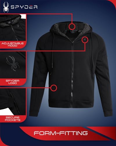 HOT ! Spyder Mens Fleece Hoodie - Heavyweight Sherpa Lined Insulated Fleece Hoodies for Men - Warm Outerwear Mens Sherpa Jacket