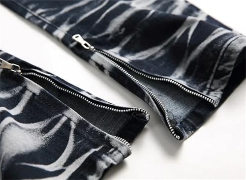 Men's Zippered Ripped Jeans High Street Motorcycle Straight Slim Fit Casual Fashion Denim Trousers 6