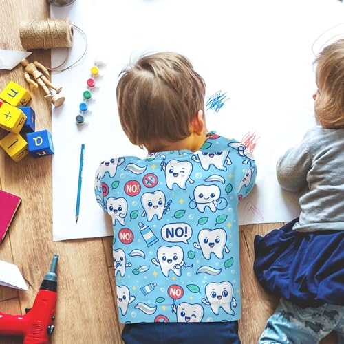 JUNZAN Dental Health Cartoon Teeth Blue Little Girls Hooded Sweatshirt Crewneck Boys Sweat Shirt Sports 4T 1