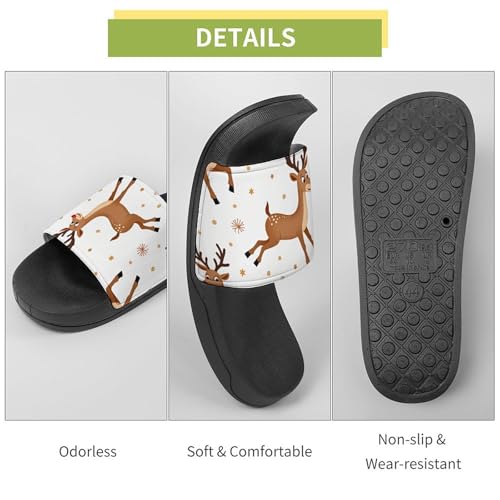 Christmas Deer Pattern Funny House Sandals Non Slip Shower Slippers Quick Drying Bathroom Shoes for Women Men 7
