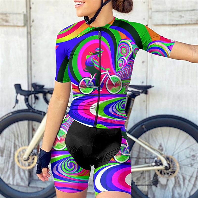 More information about Women's Cycling Jersey with Shorts Short Sleeve Mountain Bike MTB Road Bike Cycling Violet Pink Blue Graphic Bike Breathable Quick Dry Spandex Sports Graphic Clothing Apparel