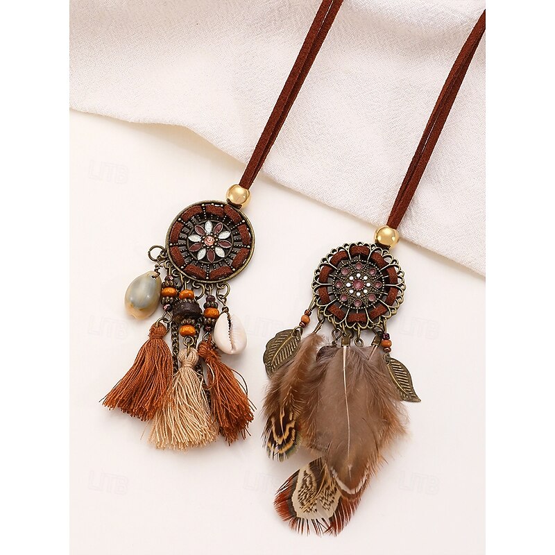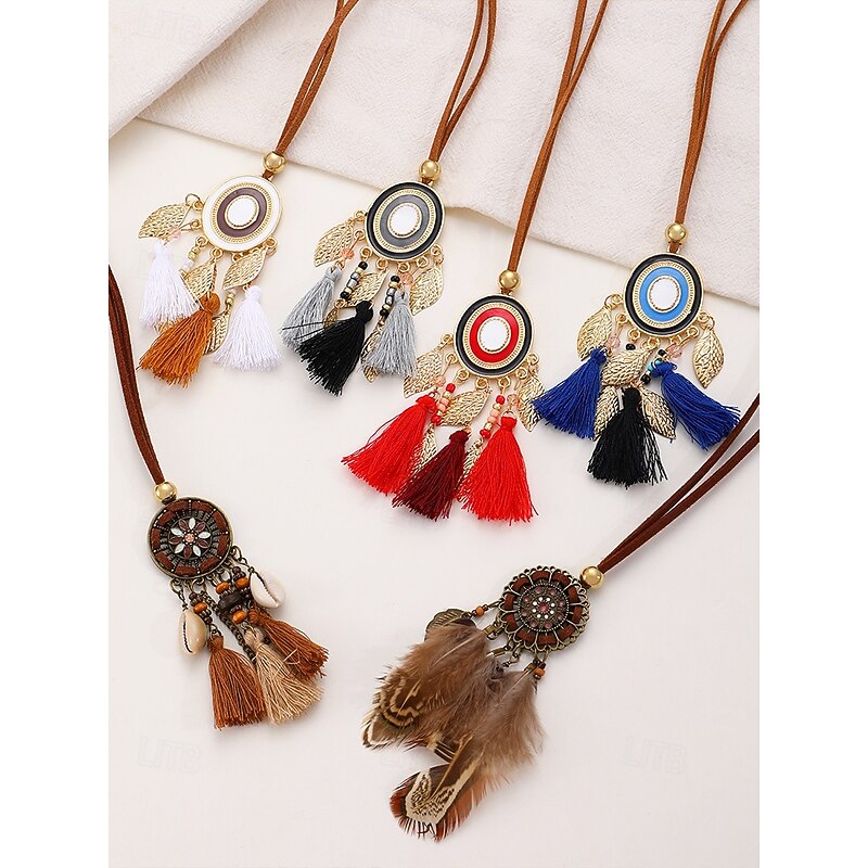 $7.99 - Women's Boho Tassel Necklace with Leather Cord and Dreamcatcher Pendant - Perfect for Festivals and Bohemian Style 2025. Shop for cheap Women's Necklace online? Buy at lightinthebox.com on sale today!