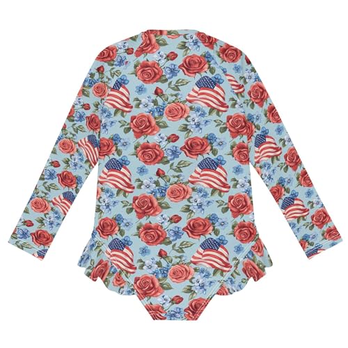 July 4th American Flag Rose Girls Long Sleeve Rashguard Swimsuit UV Protection One-Piece Swimwear B0404601 1