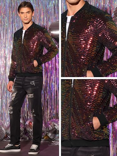 More information about Lars Amadeus Sequin Jacket for Men's Zipper Long Sleeves Party Disco Shiny Bomber Jacket