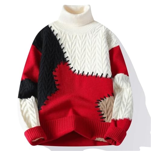 Men’S Turtleneck Long Sleeve Sweater Patchwork Loose Youthful Vitality Knitted Pullover Sweater 6