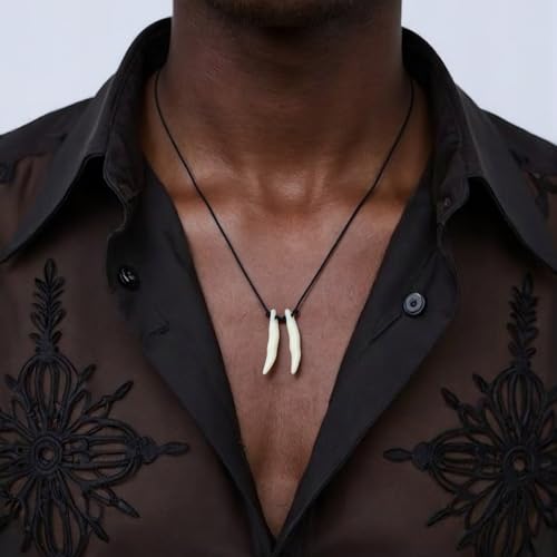 • AUTHENTIC DESIGN: Features two realistic-looking white acrylic teeth pendants on a black cord necklace, perfect for costume authenticity