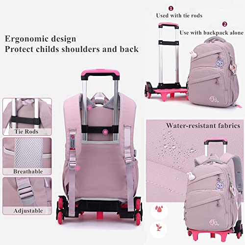 Rolling Backpack for Girls Trolley BookBag with Wheels Elementary and Middle School Luggage Travel Bag 6