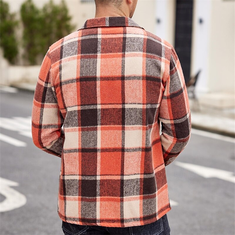 More information about Men's Shirt Flannel Shirt Overshirt Plaid Outdoor Street Black Red Orange Brown Long Sleeve Winter Spring & Fall Clothing Apparel