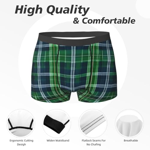 • Provocative Precision: Blue Scottish Tartan print Men's Underwear Boxer Briefs feature a bold printed pattern and a surgically precise three dimensional cut. This combination is designed to tease and please, allowing you to show off your body with a sense of mystery and allure, making every moment feel like a photoshoot.