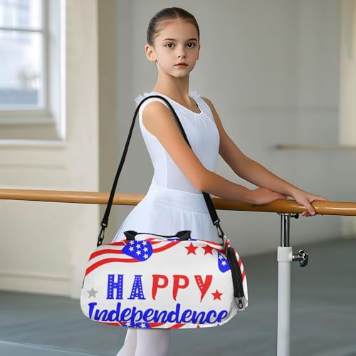 Red Blue Independence Duffle Bag for Girl, Sports Duffle Gym Bags with Shoe Compartment, Personalized Overnight Bag Travel Weekender for Kids 6