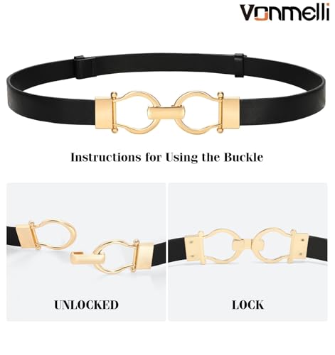 More information about VONMELLI 2 Pack Women's Leather Belts for Jeans Dress Pants Ladies Waist Belt Skinny Belt with Fashion Gold Buckle