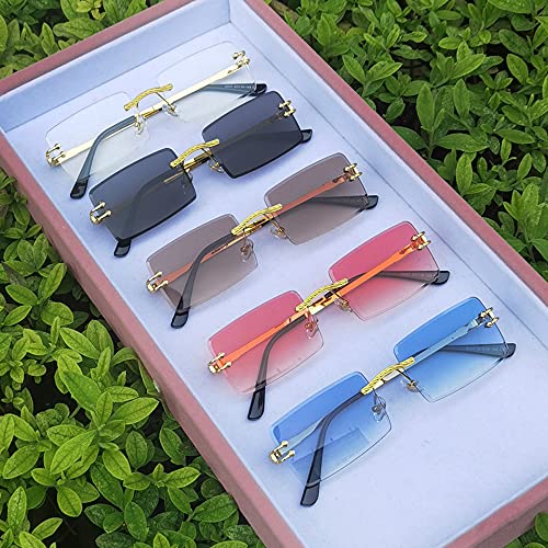 More information about kachawoo Green Blue Mirror Sunglasses Rimless Women UV400 Rectangular Retro Men Colorful