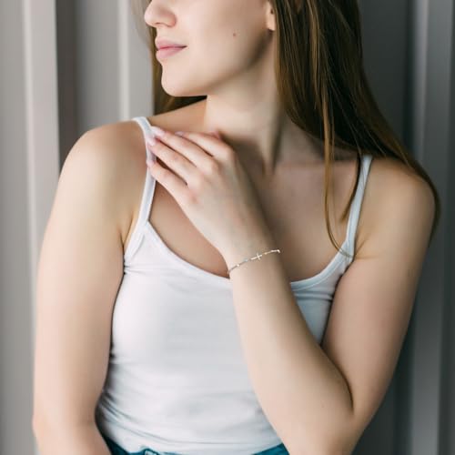 • ✝◤CROSS BRACELET SIZE&MATERIAL◢—— The bracelet length is 6.3in + 1.57in extension chain, which can be adjusted according to the size of each person's wrist, suitable for most women. Silver tone, stainless steel material, does not fade easily, ideal for women with sensitive skin.