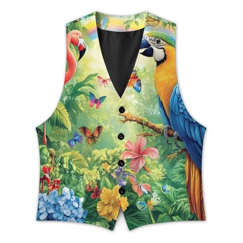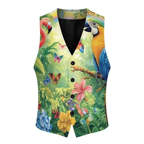 HOT ! Macaw Flamingo Tropical Suit Vest for Men Slim Fit Sleeveless Jacket V Neck Business Waistcoat Button Up Dressy Top