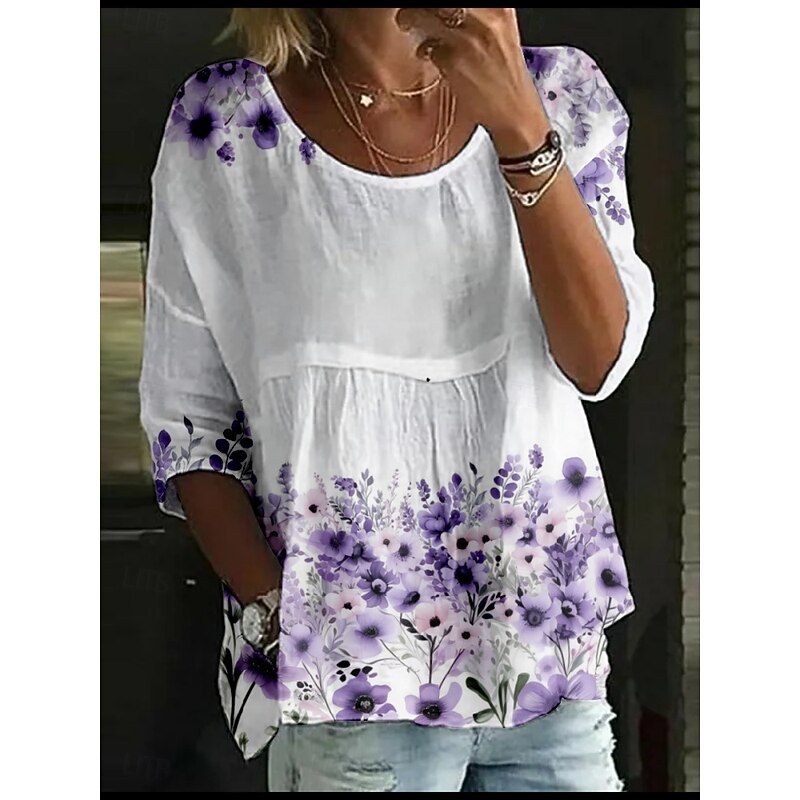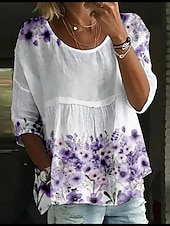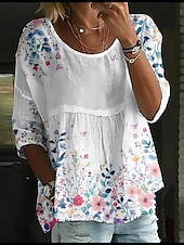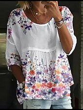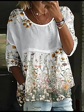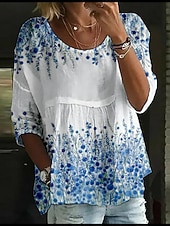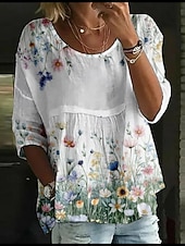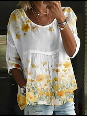 More information about Women's Blouse Floral Stylish 3/4 Length Sleeve Crew Neck Regular Tops Daily Holiday Print White Yellow Light Green Pink Blue Summer