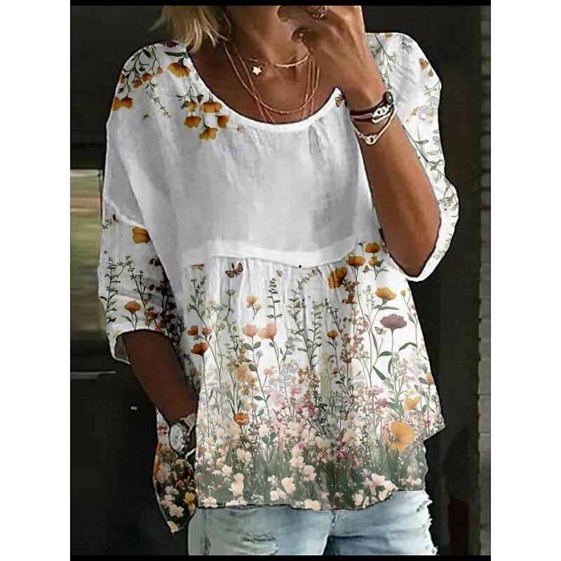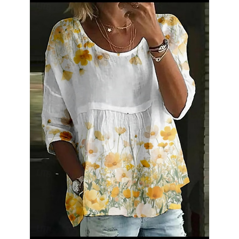 HOT ! Women's Blouse Floral Stylish 3/4 Length Sleeve Crew Neck Regular Tops Daily Holiday Print White Yellow Light Green Pink Blue Summer