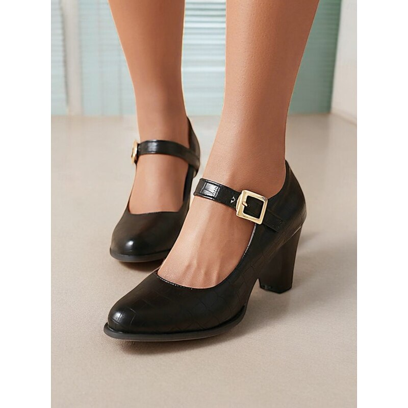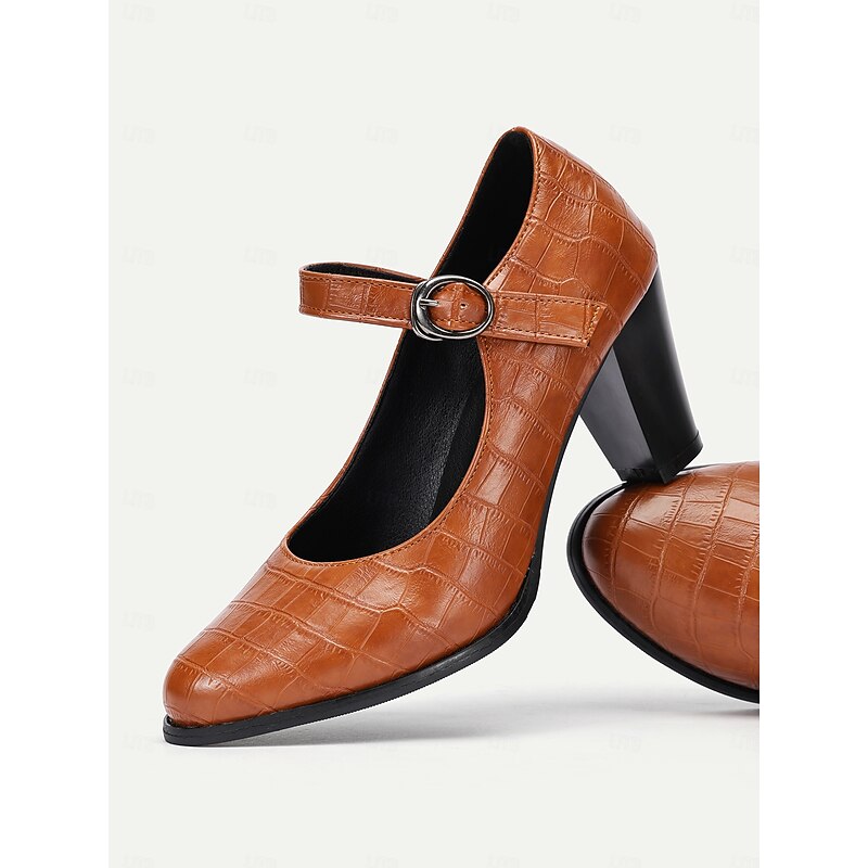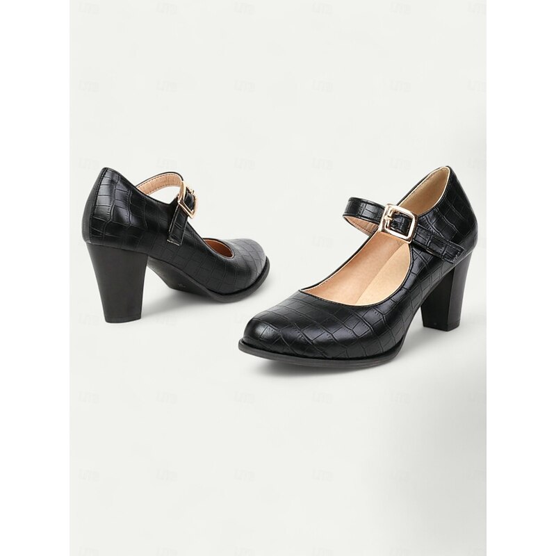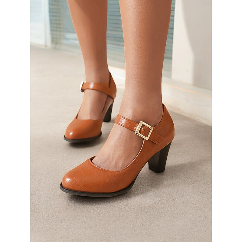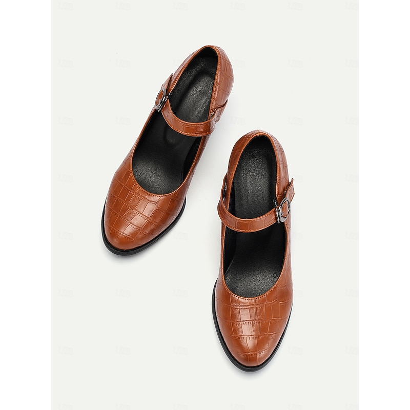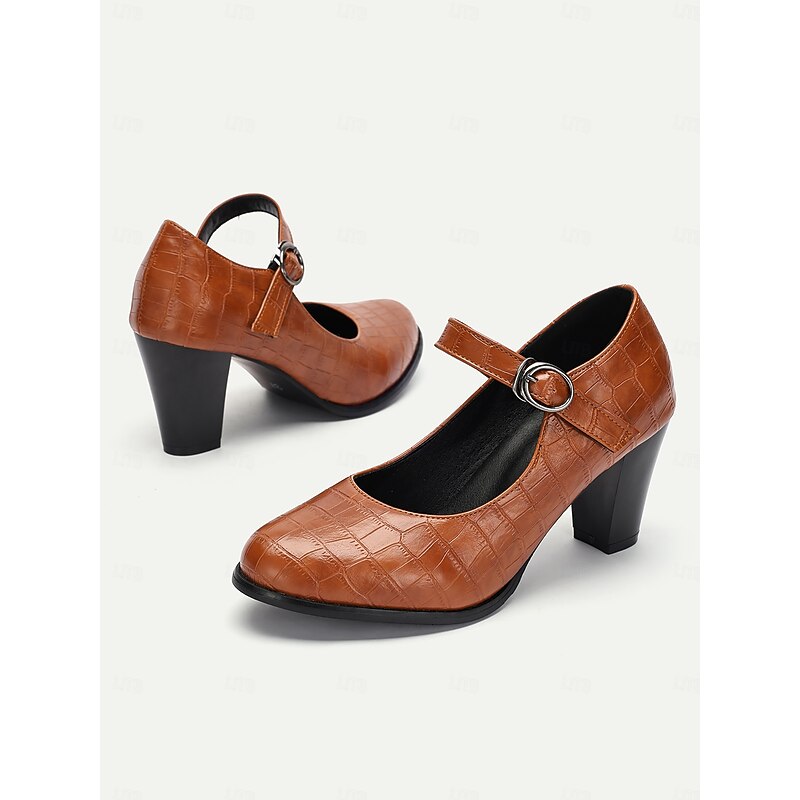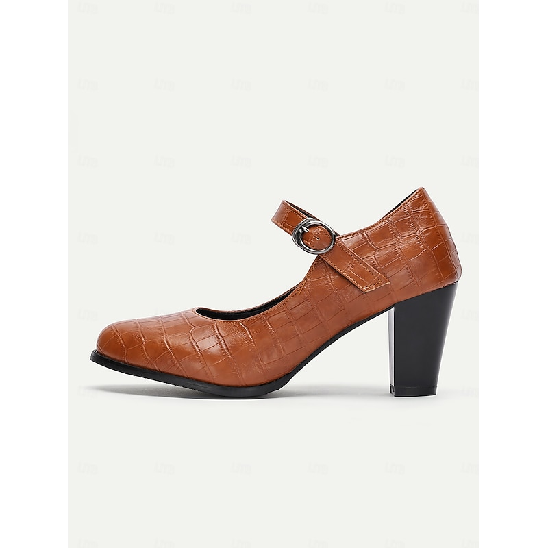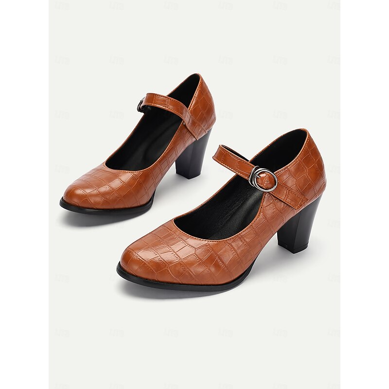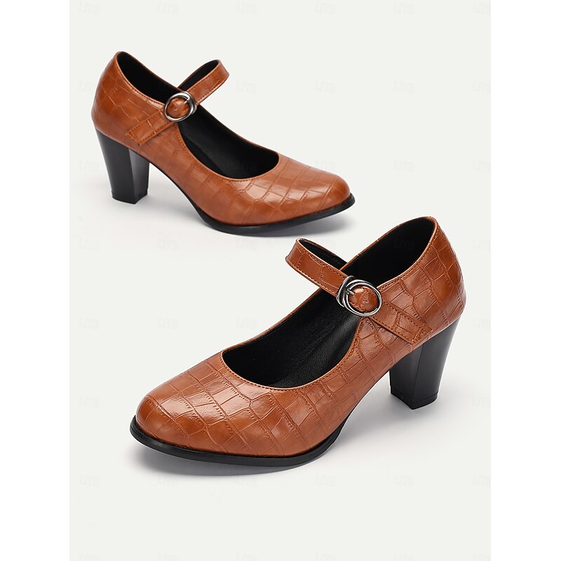 Highlights [Fabric] Crafted from a high-quality PU upper, these women’s Mary Jane pumps offer a chic and sophisticated appearance with a textured faux leather finish and synthetic leather lining for a comfortable feel. [Fit] These pumps feature a rounded toe and mid-height chunky heel, providing a balance of comfort and elegance, suitable for all-day wear. [Design Highlights] The classic Mary Jane style is enhanced with an adjustable ankle buckle strap, adding a secure fit and a touch of vintage charm. The pumps are available in a versatile brown, black, and pink color palette with a marble pattern for a timeless look. [Occasions] Ideal for both professional and casual settings, these pumps seamlessly transition from office workwear to daily outings, ensuring versatility across various occasions throughout the year. [Size Range] Available in a comprehensive size range from US5.5 to US10.5, these shoes are true to size, making it easy to select your usual fit for a perfect match across all seasons.