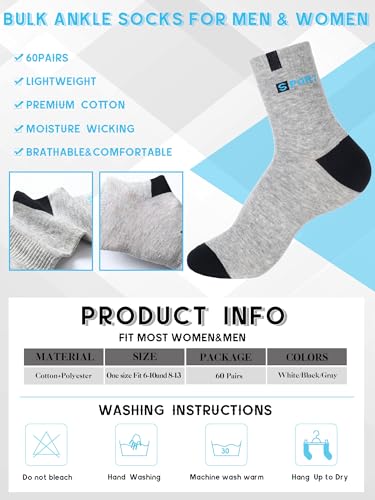 60 Pairs Mens Socks Bulk Homeless Thermal Winter Moisture Wicking Sports Ankle Sock for Men Unisex 5