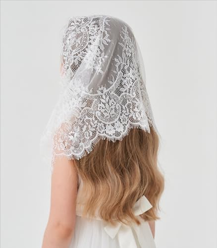 Girls First Communion Veil - Lace Infinity Chapel Veil Tulle Wrap for Baptism & church Accessories K9 5