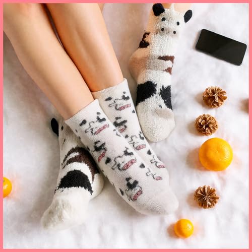 • Suitable Size: our cow socks fit most people, our plush socks fit shoes size US 5-10; The soft socks with elastic at the ankle will not leave pressure marks on your legs, the color matching is fresh and simple, allowing you to enjoy a comfortable wearing experience during daily activities and even during sleep