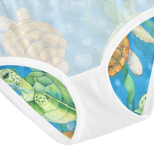 Watercolor Sea Turtles Blue Toddler Underwear Floral 2t Cotton Panties for Girl Print Undies Kids Briefs 4