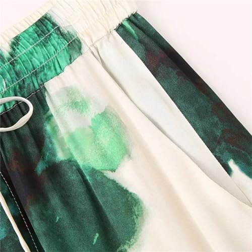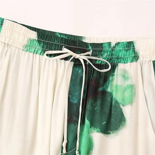 More information about Women's Casual Print Loose Turn-Down Collar Shirt Stylish Office Elastic Waist Pants Set