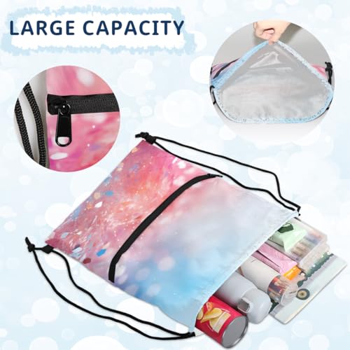 • MATERIAL: This waterproof and smooth fitness sports drawstring bag is made of high quality and durable polyester fiber, strong and durable. Our drawstring bags are lightweight, foldable and easy to travel. The exterior is equipped with 1 zipper pocket for convenient storage, perfect for men and women to use for sports and fitness.