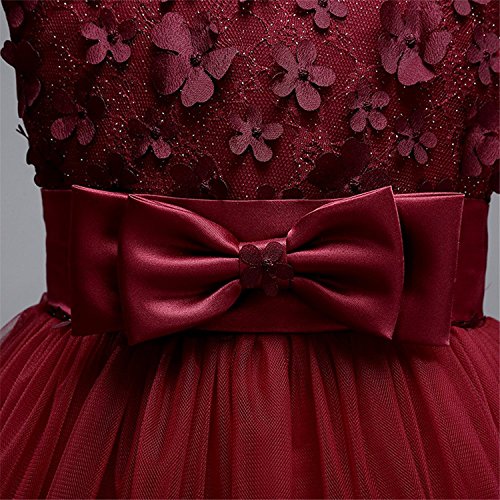 Kids Girls Rose Flower Lace Short A line Party Dress Knee Length Wedding Princess Tulle Tutu Formal Prom Evening Ball Gown 6
