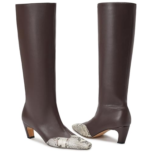 Beauty Cry Snakeskin Knee High Boots for Women Kitten Heel Tall Boots Square Toe Fashion Sexy Boots 6