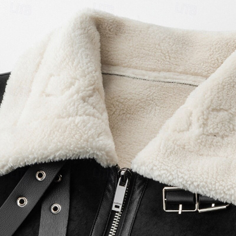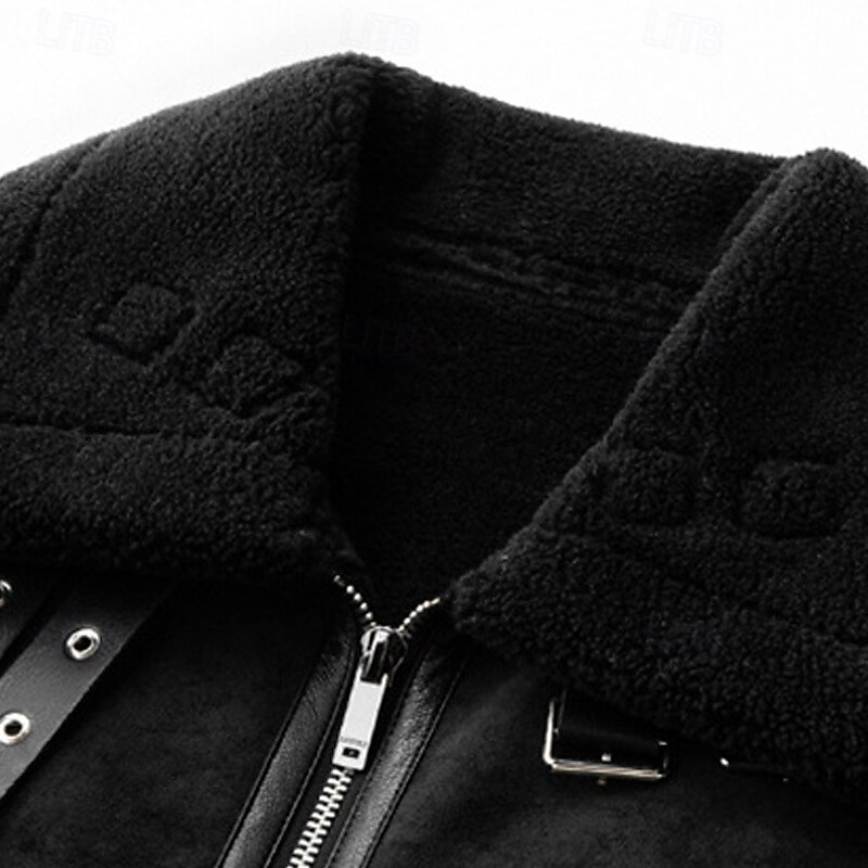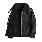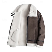 More information about Men's Faux Leather Jacket Fleece Jacket Biker Jacket Motorcycle Jacket Daily Vacation Windproof Warm Pocket Fall & Winter Plain Fashion Classic Lapel Regular Black Beige Coffee Jacket