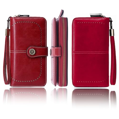 HOT ! BYWAUQI Wallets for Women Leather Large Capacity Credit Card Holder for Women with Wristlet Zipper Pocket ID Window(red)