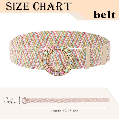 Urieo Elastic Round Buckle Straw Belts Beaded Colorful Stretch Woven Belt Dresses Dress Jeans Pants Raffia Belt for Women 7