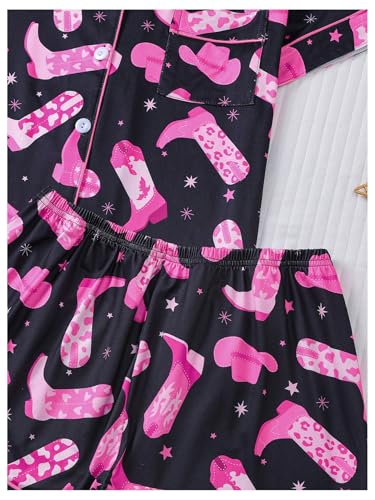 WDIRARA Women's 2 Piece Boots Graphic Pajama Set Pocket Patched Button Down Shirt with Shorts Satin Sleepwear 1
