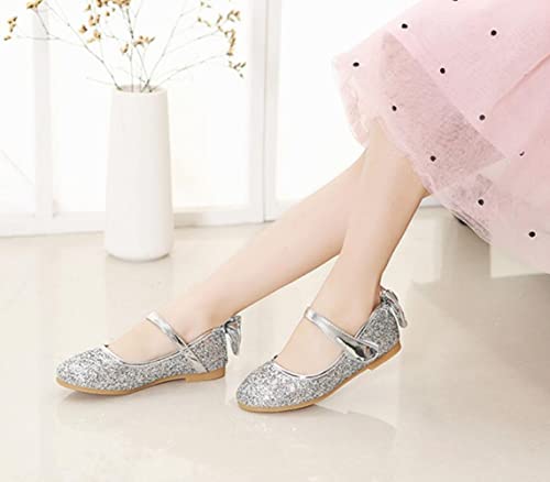 Girl's Mary Jane Ballet Flats with Bow Flower Girl Wedding Party Ballerina Dress Shoes 6