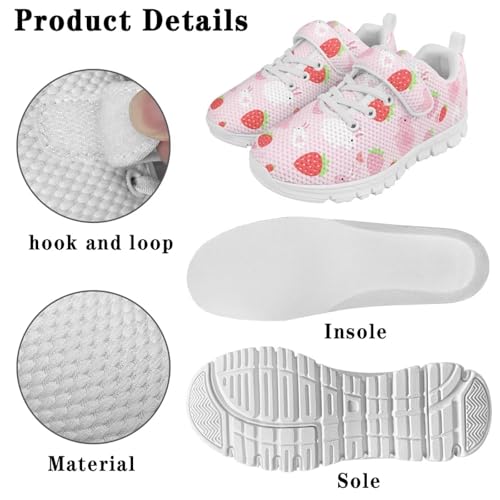 More information about Little Kid Boys Girls Tennis Shoes Kids Slip on Running Sneakers Wide Casual Barefoot Shoes Strawber Pattern(White Sole)