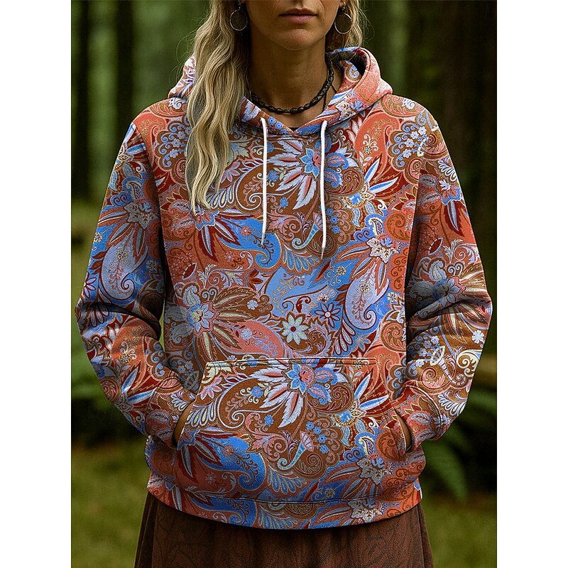 $28.99 - Women's Pullover Hoodie Sweatshirt Floral Graphic Paisley Casual Long Sleeve Hooded Regular Tops Party Evening Wear Street Dailywear Pink Blue Orange Green Spring Fall Winter 2025. Shop for cheap Boho Tops online? Buy at lightinthebox.com on sale today!