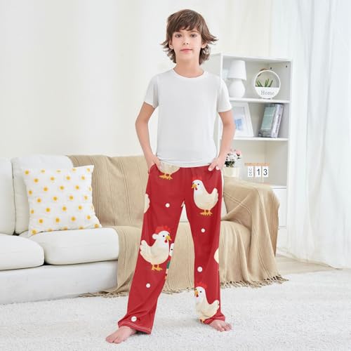 ZZXXB Chicken Snow Boys Long Pants Soft Trousers Elastic Waist Kids Lounge Bottoms with Pockets S-XL 6